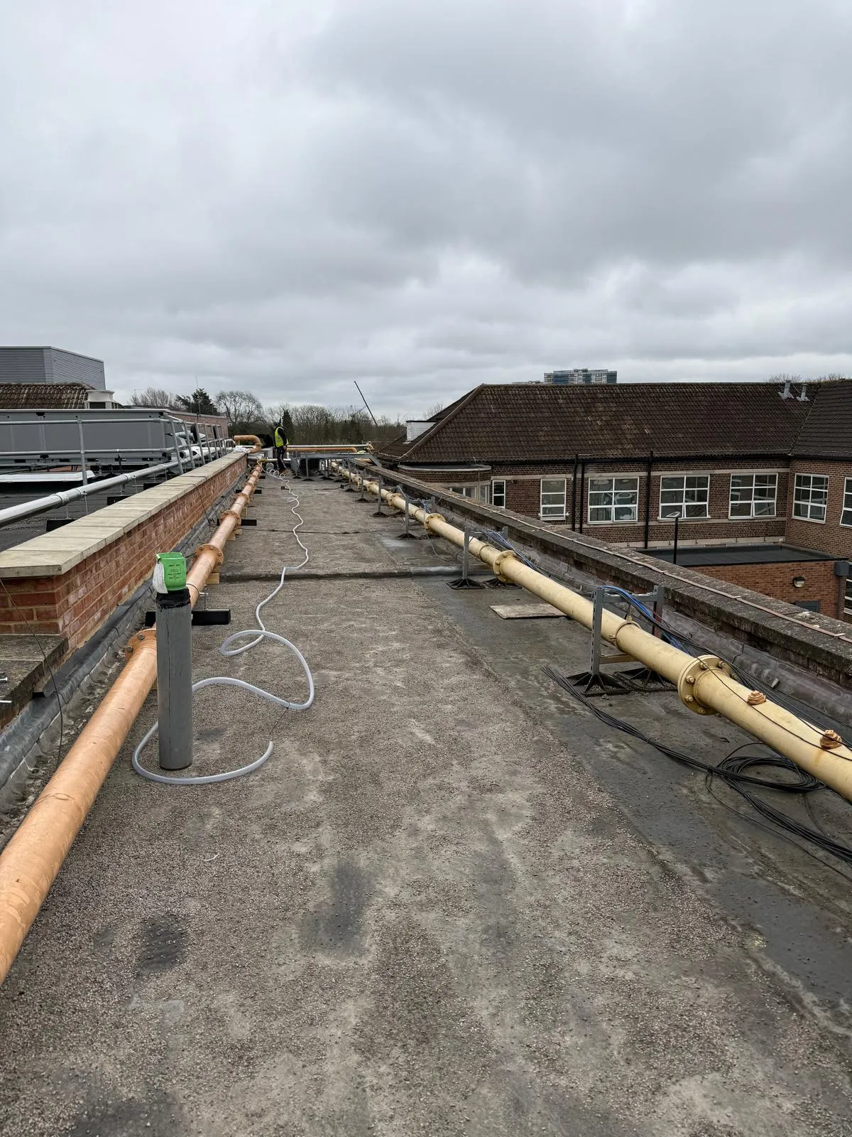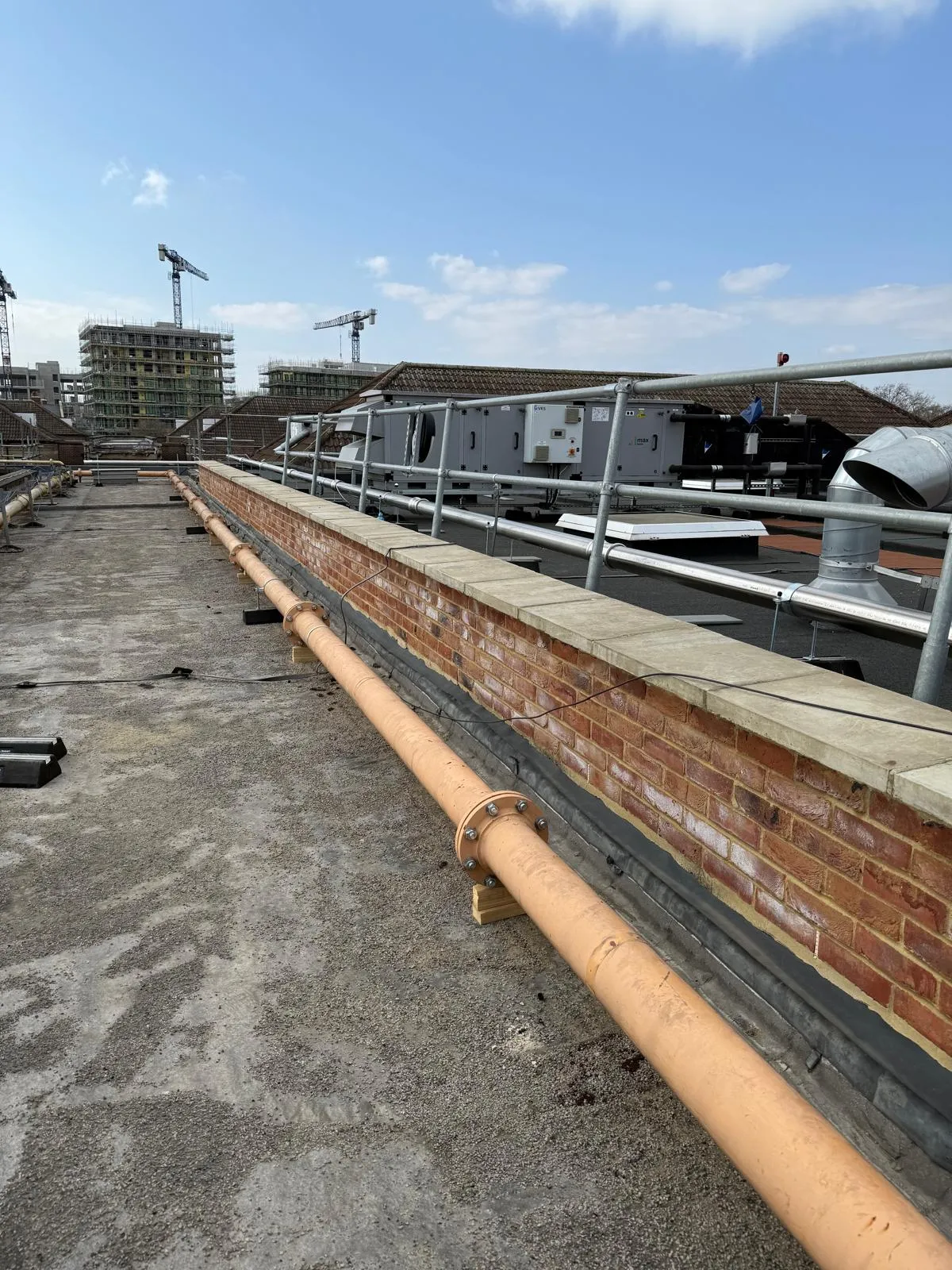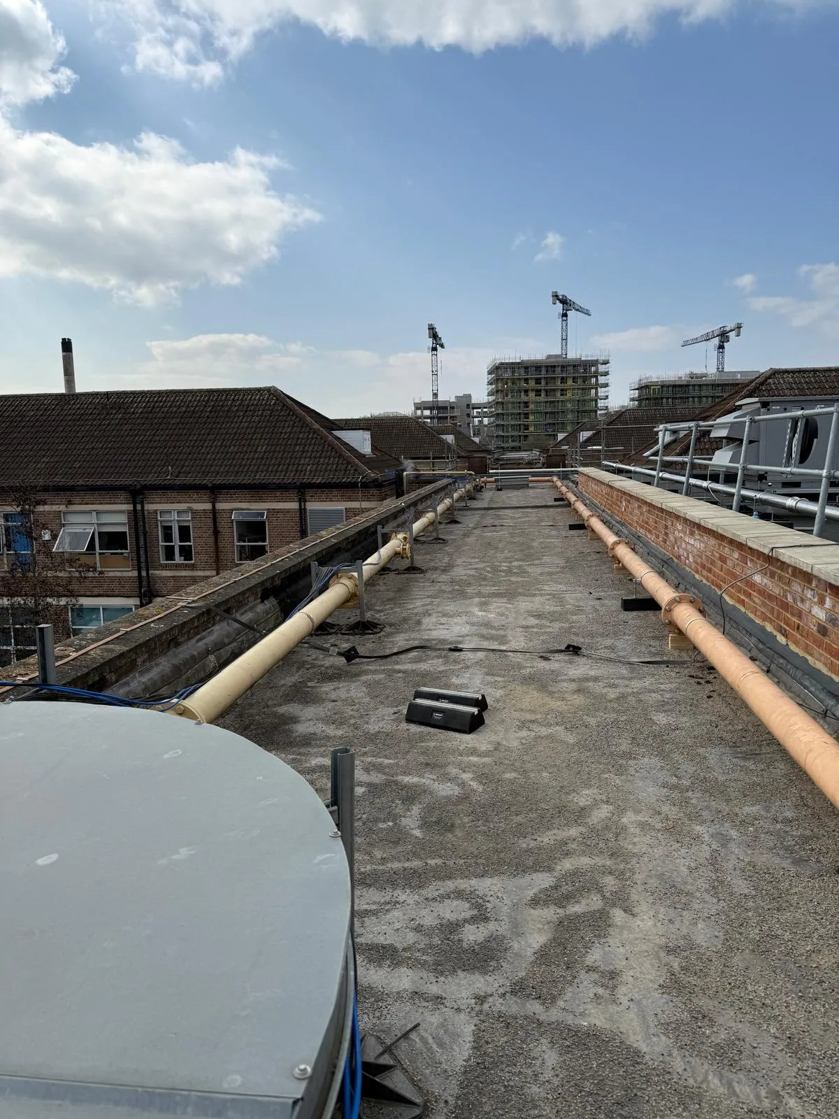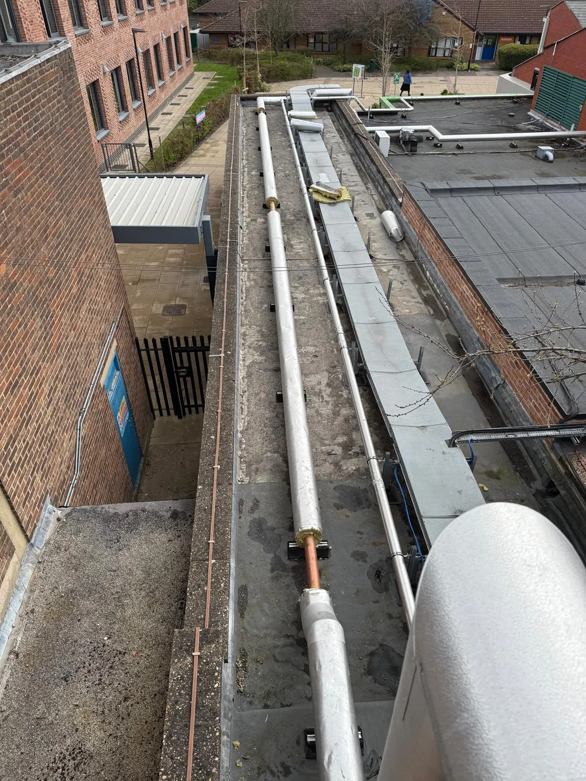• Existing pipework was obstructing the planned roof replacement, requiring careful removal and temporary isolation.
